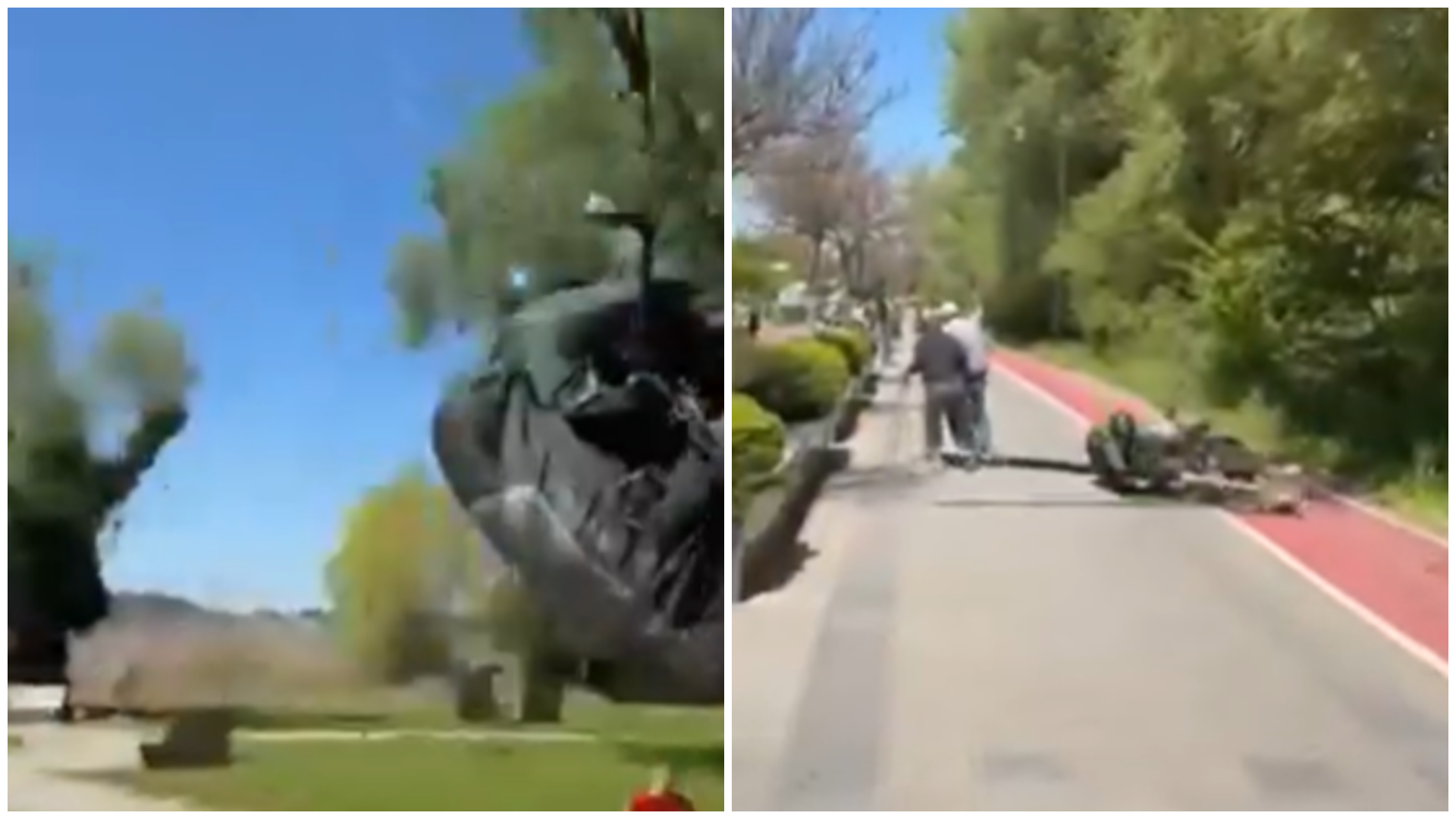 Притоа, дел од опремата на параглајдерот ја зафатила електричната канделабра поставена на централниот дел од патеката која се скршила и паднала на пешачката лента.